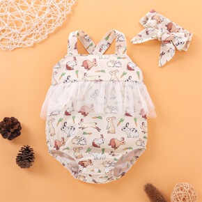 新款夏季婴幼儿女宝宝吊带可爱小兔子动物印花哈衣+头...