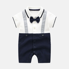 ins新款男宝宝绅士领结连体衣0-3-6新生儿翻领...