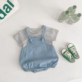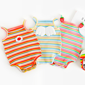 此款不包邮 2022夏季新款女宝宝糖果色条纹连体衣...