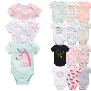 ebay热卖爆款梭织棉印花彩色女童包扣连体爬服哈衣...
