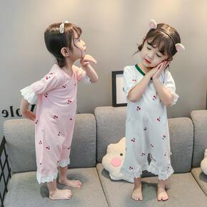 2019ins热卖欧美爆款梭织纯棉蕾丝复合女童连体...