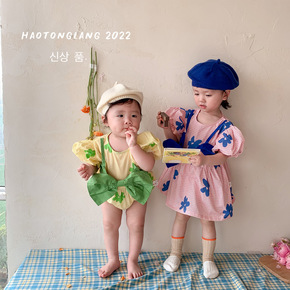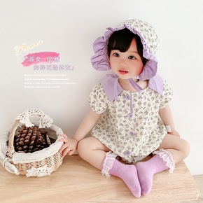好童郎2022夏季女宝宝新款洋气花朵大蝴蝶结哈衣甜...