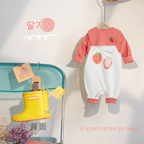 含口水巾春秋款 0-2小草莓可爱女宝宝哈衣外出服 ...