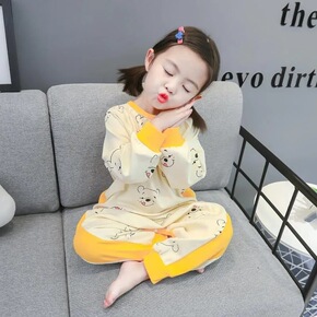 儿童连体睡衣秋季新款女孩纯棉睡袋宝宝防踢哈衣春秋款...