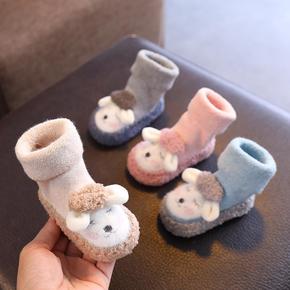 婴儿鞋子冬季毛毛室内软底学步0-6月地板宝宝鞋袜棉...
