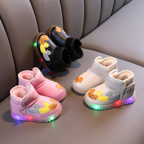 2022冬季新款儿童雪地靴韩版男女童时尚皮面短靴宝...
