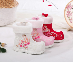 儿童雪地靴2021冬季新款女童时尚兔毛亮面保暖棉靴...