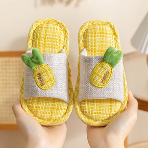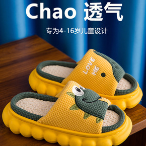 春夏儿童拖鞋亚麻四季家用男童女童卡通防滑居家室内小...