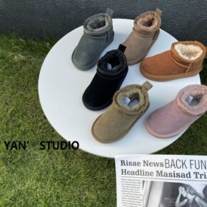 2021冬季儿童雪地靴韩版男女童简约纯色一脚蹬短筒...