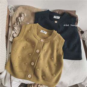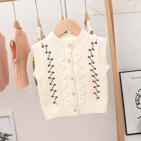 鹿小鹿女童日韩系花朵洋气秋季新款毛线马甲宝宝春秋外...