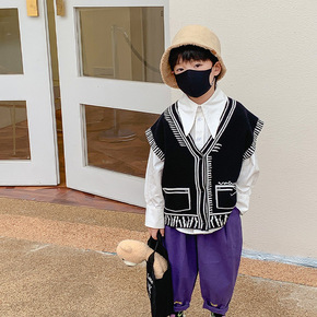 童装男童针织马甲秋冬装新款韩版洋气时尚中小童宝宝毛...