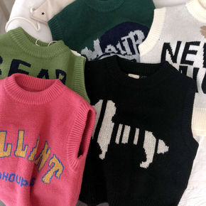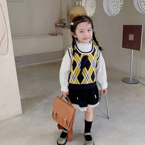 秋冬童装韩版男童针织马甲加厚儿童棋盘格大童套头女童...