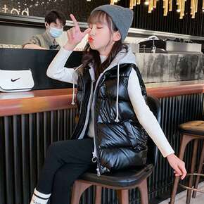 儿童棉马甲外穿秋冬装女童棉马夹亮面洋气中大童背心潮...
