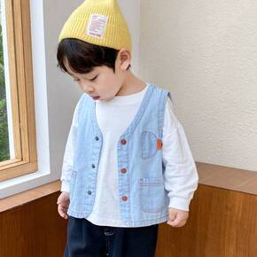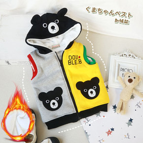 外贸童装儿童马甲加厚21秋款韩版拼色男童女童加绒背...