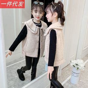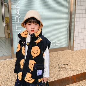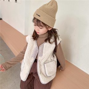 2021冬季新款童装儿童包边羊羔绒马甲男女童宝宝加...