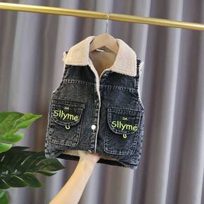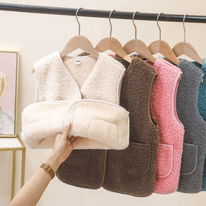 加绒加厚儿童羊羔绒马甲秋冬男童女童棉背心中小童坎肩...