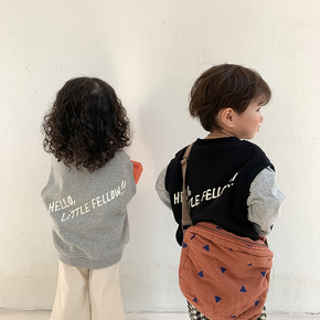 童马甲2022春季新品韩版男女童字母卫衣马甲儿童V...