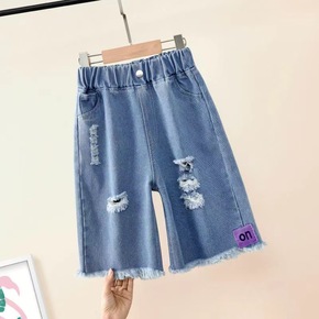 女童短裤夏季牛仔裤五分裤新款破洞薄款洋气儿童中大童...