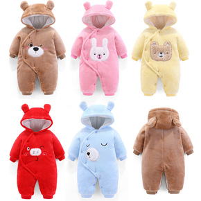 现货冬季新生儿婴儿外出连体衣服 0-1岁男女宝宝冬...