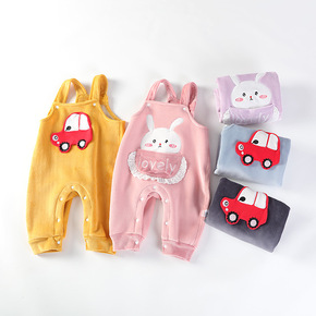 新款加绒背带裤男女宝婴幼儿卡通薄绒背带长裤新生儿秋...