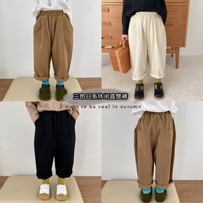 儿童裤子2022春款男女童日系纯色休闲长裤宝宝水洗...