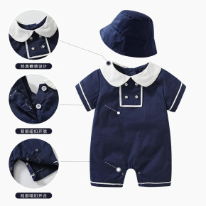 2022新生儿连体衣夏季学院风短袖宝宝翻领哈衣韩版...