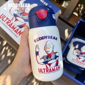 杯具熊联名奥特曼熊抱迪迦不锈钢儿童保温杯小学生带吸...