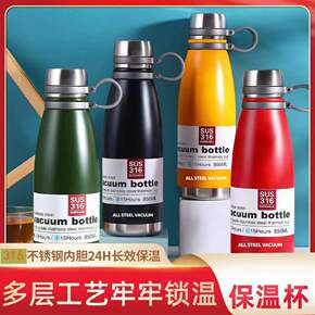316全钢杯不锈钢真空保温杯户外运动手提水壶可乐杯...
