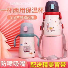 Y3仔仔熊毛绒儿童水杯316不锈钢保温杯男女带吸管...
