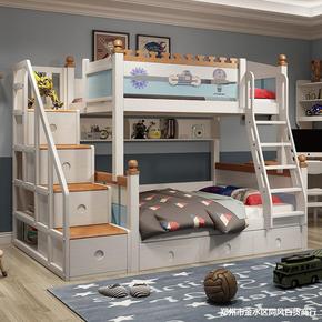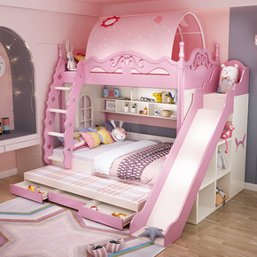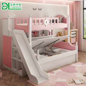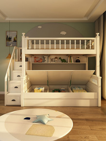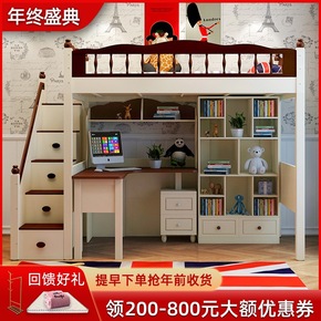 公主上下床 全实木子母高低铺双层储物多功能书桌衣柜...