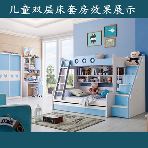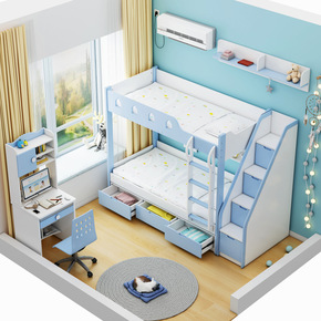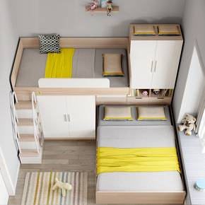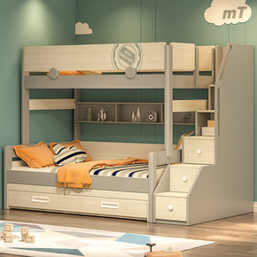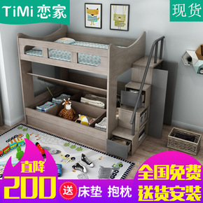 北欧家具板式现代多功能组合床上下高低储物床儿童双层...