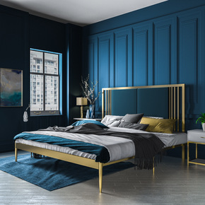 现代简约金色铁艺床北欧公主铁架床ins风单人双人网...