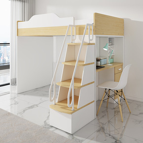 上床下桌高低床带书桌双层床宿舍实木高架床成人儿童多...