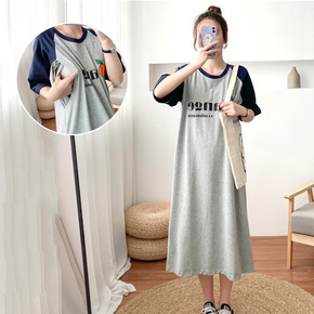 孕妇两用哺乳装外出时尚连衣裙春夏季辣妈款喂奶衣期女...
