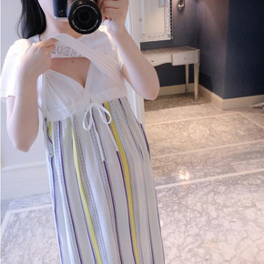 2022夏季新款韩版孕妇装印花拼接撞色条纹哺乳连衣...