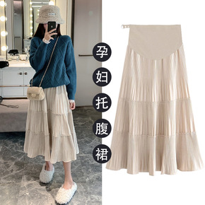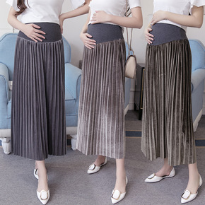 孕妇装2021秋冬新款韩版时尚a字丝绒孕妇半身百褶...