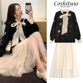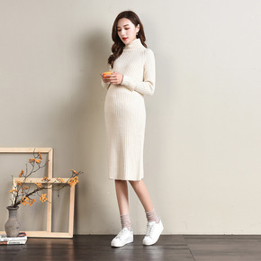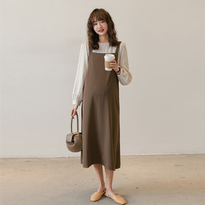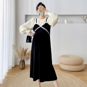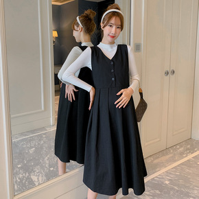 孕妇装秋冬新品打底衫+百褶中长款背心连衣裙减潮妈孕...
