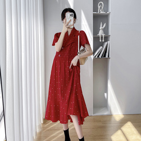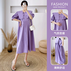 网红款时尚孕妇装甜美双排扣连衣裙2022夏装新款宽...