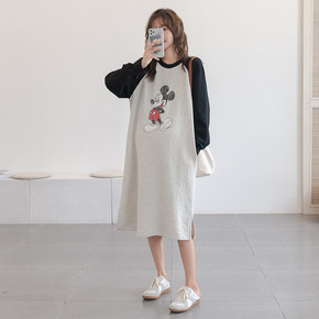 秋季新款孕妇裙韩版时尚款卡通印花长袖连衣裙宽松大码...
