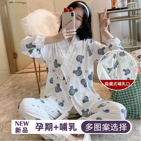 春秋日式孕妇睡衣女夏季喂奶衣薄款月子服产后宽松哺乳...