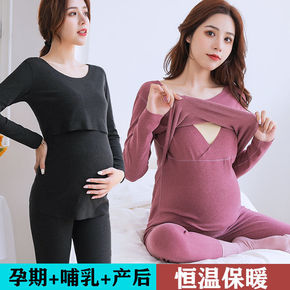 孕妇秋衣秋裤德绒无痕保暖内衣套装喂奶秋冬加绒孕期产...