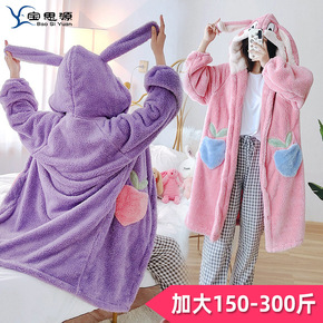 加肥加大码孕妇睡衣套装睡袍加绒加厚秋冬款150-3...