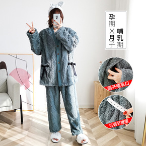 月子服纯棉产后哺乳睡衣薄款春秋产妇孕妇睡衣喂奶秋冬...