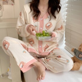 新款春秋纯棉月子服 孕妇哺乳睡衣开衫长袖 孕妇居家...