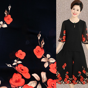 新款雪纺印花布料 妈妈装连衣裙服装布料 厂家直供现...