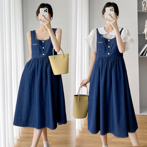 孕妇连衣裙夏季孕晚期夏装春装孕妇装夏套装背带裙上衣...