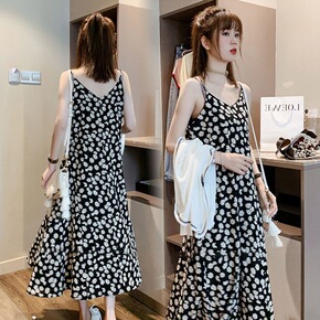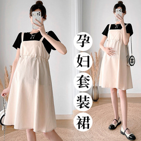 孕妇夏装连衣裙套装时尚款洋气孕妇背带裙夏季宽松大码...