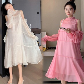 孕妇装夏装连衣裙时尚款宽松雪纺仙女裙套装洋气中长款...