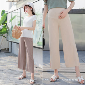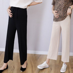 孕妇裤2022春夏新款系带冰丝阔腿裤九分裤直筒宽松...
