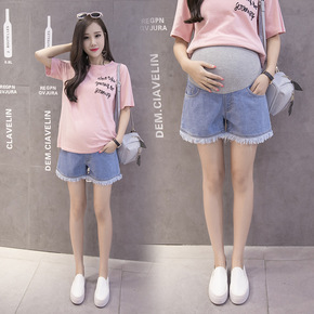 2022夏季新款韩版时尚外出孕妇卷边牛仔托腹短裤...